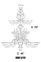 Handworked clear glass chandeliers, wall light and table candelabrum.