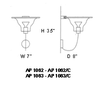 Glassdiffuser color: AP 1062 transparent crystal, AP 1062/C amber or blue, AP 1063 crystal satin finish, AP 1063/C amber satin finish or blue satin finish