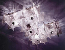 Hand-crafted glass modular ceiling lamp.